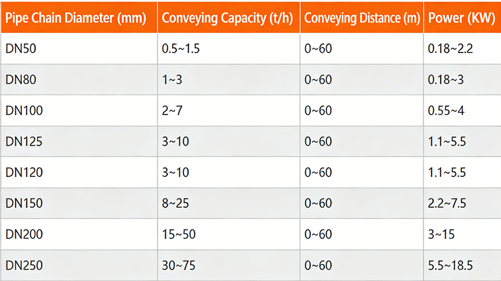Tubular Cable Conveyor is a continuous conveying equipment for conveying powder, small particle and small block and other loose materials, which can be combined horizontal, inclined and vertical conveying. In the closed pipe, the chain plate is used as the transmission member to drive the material along the pipe. When conveying horizontally, the material particles are pushed by the chain in the direction of movement. When the internal friction between the material layers is greater than the external friction between the material and the tube wall, the material will move forward with the chain, forming a stable material flow; When vertical conveying, the material particles in the pipe are pushed upward by the chain piece, because the lower feeding stops the upper material from sliding, producing lateral pressure, so it enhances the internal friction of the material, when the internal friction between the material and the inner wall of the pipe friction and the material weight, the material is transported upward with the chain piece, forming a continuous material flow.